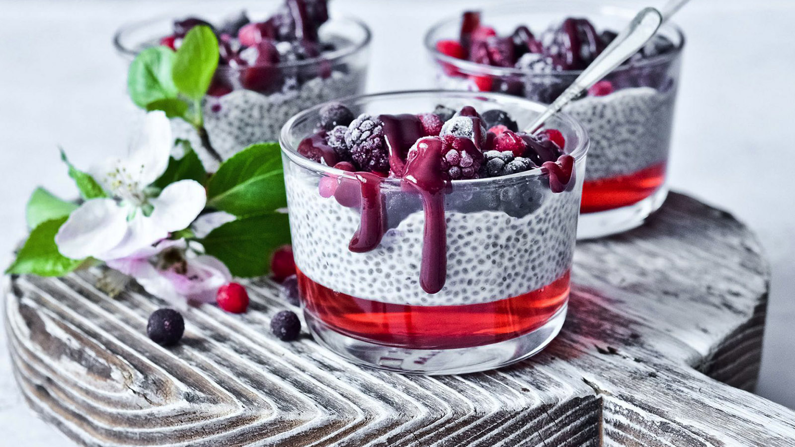 - Pour the mixture into 2 glasses / jars and stir 3 tbsp of chia seeds into each. Cover and refrigerate overnight.